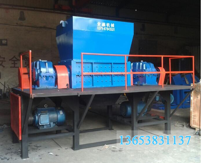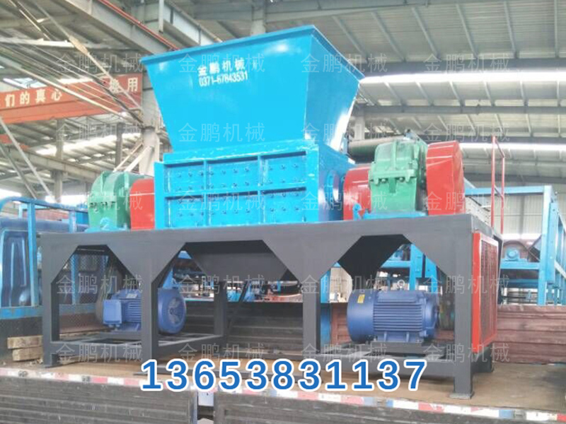 金鵬編織袋撕碎機采用雙軸剪切原理,利用兩組相對旋轉的刀軸對物料進行剪切和撕裂。具體工作流程如下:
